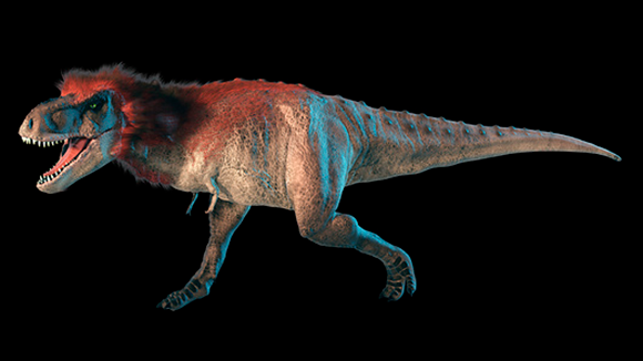 רוב החוקרים בטוחים למדי שהטי רקס היה מנוצה, לפחות בשלבים הראשונים של חייו. אילוסטרציה של טי רקס עם פלומת נוצות אדמדמות על צווארו וגבו | Mark Garlick / Science Photo Library