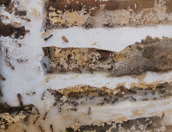 השלם חזק, עמיד וחכם יותר מכל פרט ופרט. מושבת נמלים במשרדו של עופר פיינרמן | צילום: יהונתן ברקהיים