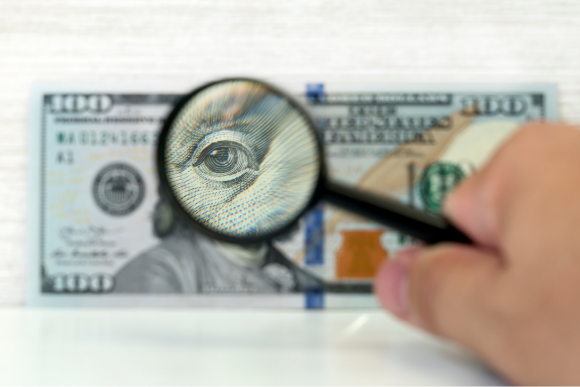 מהי המקבילה לחותמת מים או מטא-דאטה בטקסט? חיפוש חותמת המים בשטר של מאה דולר | Melnikov Dmitriy, Shutterstock