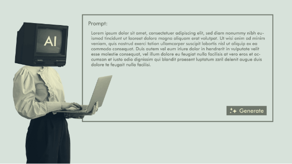 חותמת מוסווית כזו לא תהיה גלויה, ולכן יהיה קשה יותר לחבל בה, אך מי שידעו איפה היא מסתתרת ימצאו אותה בקלות. אישה עם ראש־מסך כותבת שאילתה (פרומפט) למחולל | AI Collagery, Shutterstock
