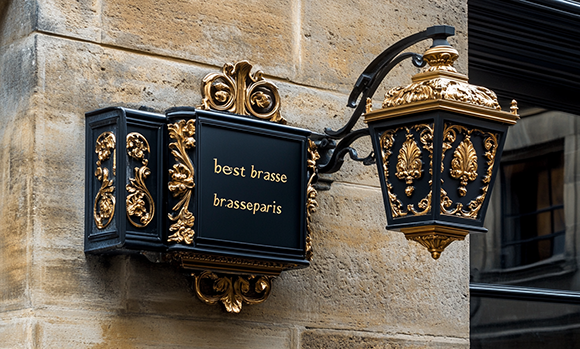 מתקשה להציג טקסט בתוך התמונה. ניסיון של מחולל התמונות מידג'רני לחולל שלט עם הטקסט "best brasserie paris" | ליאת פלי באמצעות מידג'רני