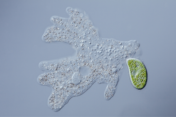 טורפים טבעיים כגון אמבות עלולים לא לזהות את חיידקי המראה כטרף. אמבה וריסנית | Lebendkulturen.de, Shutterstock