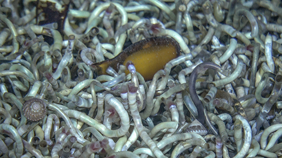 נמצאות סביב נביעות המתאן ונהנות מיחסי גומלין עם חיידקים המבצעים כימוסינתזה. תולעי למליברכיה וביצת כריש | מקור: יצחק מקובסקי ומקסים רובין-בלום, אוניברסיטת חיפה וחיא"ל