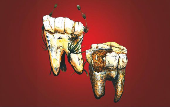 "כל שבעת הפרטים האלו כנראה לא אכלו בשר באופן קבוע". ציור של שתיים מהשיניים שנבדקו | Dom Jack, MPIC