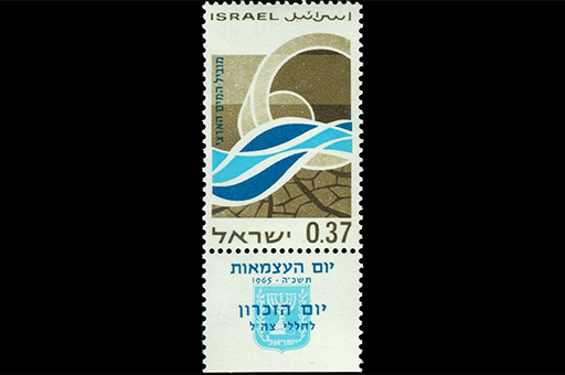 חלוציות, מדע, מדיניות נכונה וחינוך, התגברו על המחסור במים. בול ליום העצמאות 1965, שחוגג את פתיחת המוביל הארצי | ויקימדיה, Zvi Narkis for Israel Post
