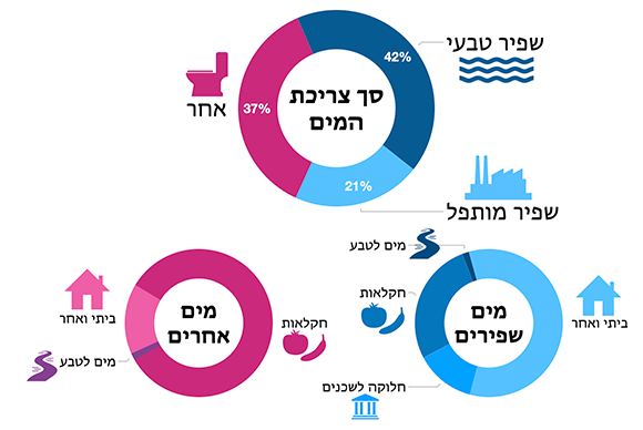 למרות כל החיסכון, סך המים שאנו מנצלים כיום בארץ עומד על כ-2.5 מיליארד קוב בשנה – משמעותית יותר מכמות המים המתחדשים הניתנים לשאיבה, שלא לדבר על השאיבה בפועל. הדבר מתאפשר תוך שיקום הטבע בזכות שילוב יוצא דופן של שימוש חוזר והתפלה.