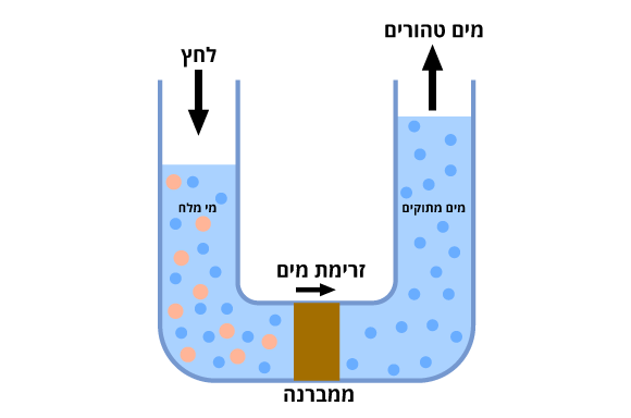 בלב המתקנים נמצאים מערכת אדירה של ממברנות – שכבות סינתטיות אשר מאפשרות למים לעבור דרכן, אך מונעות את מעבר מלח הים. אילוסטרציה של אוסמוזה הפוכה | Shutterstock, zizou7