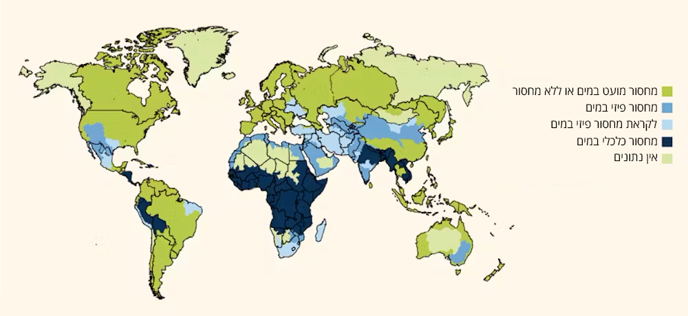שינויי האקלים צפויים לייבש עוד יותר את אזורנו, הצחיח כבר עתה. מפה המראה את המחסור במים ברחבי העולם | World Water Assessment Programme (WWAP)