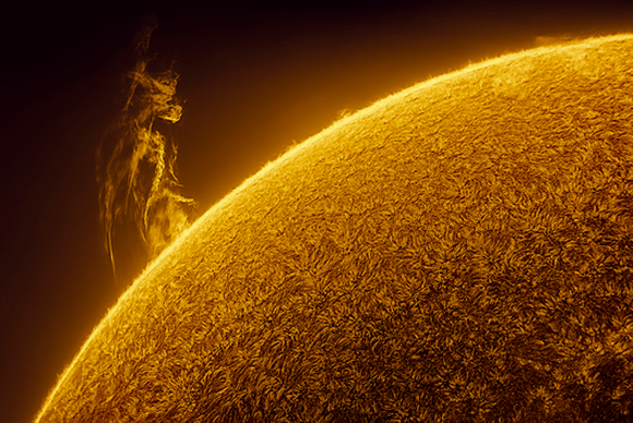 התפרצות שמש מתרחשת כאשר אנרגיה האגורה בשדה המגנטי של השמש משתחררת בפתאומיות. התפרצות שמש שתועדה ביולי 2022 | Miguel Claro / Science Photo Library