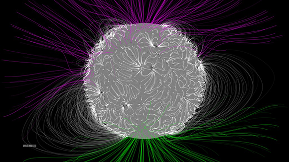 סרטון של נאס"א המתאר את השינויים בשדה המגנטי של השמש: