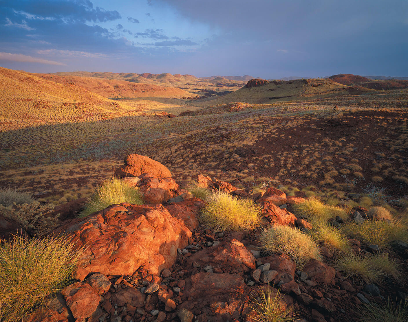 כשהמשכנו בדרך עפר אל הגבעות, פינו המישורים החרוכים את מקומם לתלים מוריקים. העשב המכסה אותם קרוי ספיניפקס או טריאודיה, עשב מדהים אבל שטני. הוא גדל כשיחים שקוטרם עד מטר, והם בעלי להבים מעוגלים ועדינים המסתיימים בקצוות חדים כמחטים העשויים צורן כמעט טהור. הקצוות יחדרו כל בד ובגד. המפקח שלי שלף חותלות עבות כדי להגן על רגליו. אבל הוא שכח להזהיר אותי מפני הסכנה. ללא חותלות, הפכתי לדורבן מהלך בתוך דקות – העור שלי שופד במחטי צורן רבות מאוד שנתלשו מן העשבים ונותרו נעוצות בבשרי במשך חודשים.