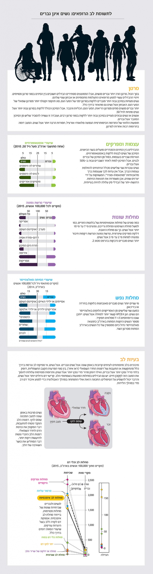 • רופאים טועים באבחון נשים הסובלות ממחלות לב מפני שהתסמינים שלהן שונים מאלה המאפיינים בדרך כלל גברים.