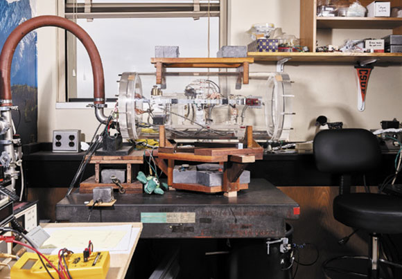 או שזה לפחות היה מה שהוא טען. פירן, שראשה המגולח וחיוכה הלגלגני מעידים על ספקנות תמידית, הייתה פחות בטוחה. "לא ממש השתכנעתי שמה שהוא עושה באמת נכון", היא אומרת. מדי יום, כשחלפה על פני חדרו, ראתה פירן מחזה שהזכיר יותר ניסוי מעבדה בקורס מבוא לפיזיקה מאשר מערכת הינע עתידנית. המערך שוודוורד בנה כלל מאזניים נעולים שבצידם האחד תלוי כלוב מתכת, תילים מתוחים בכל מקום ומשקולות נגדיים בצד השני. "אפשר להשיג אפקטים כבידתיים גדולים מאוד אם רק דוחפים דברים", הבטיח לה וודוורד – והתכוון במיוחד לדבר שבתוך קופסת המתכת.