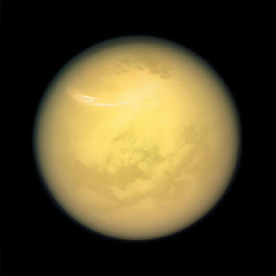 ירח יוצא דופן אחר הוא טיטן. המצלמות בתחומי האור־הנראה והאינפרה־אדום־הקרוב צוידו מראש באמצעים שיחדרו את מעטה האובך של טיטן, ומכשיר המכ"ם של החללית הותאם בצורה מיטבית לחצות את האטמוספרה ללא הנחתה כלשהי. וכמובן, הצניחה של הויגנס בראשית 2005 דרך האטמוספרה של טיטן במשך שעתיים וחצי, שבמהלכה נאספו תצלומים פנורמיים, מדידות של הרכב האטמוספרה, שקיפותה, נתוני רוח וטמפרטורה לפני שהחללית נחתה על פני הירח, סיפקה מידע רב. באופן כללי, קסיני מצאה בטיטן עולם הנראה כלקוּח מסיפור מדע בדיוני, שבו צורות הנוף ומאפייני האוויר דומים למוכר לנו אבל עשויים מחומרים בלתי צפויים, מקום שבו המראות מוכרים אבל ההרגשה שונה.