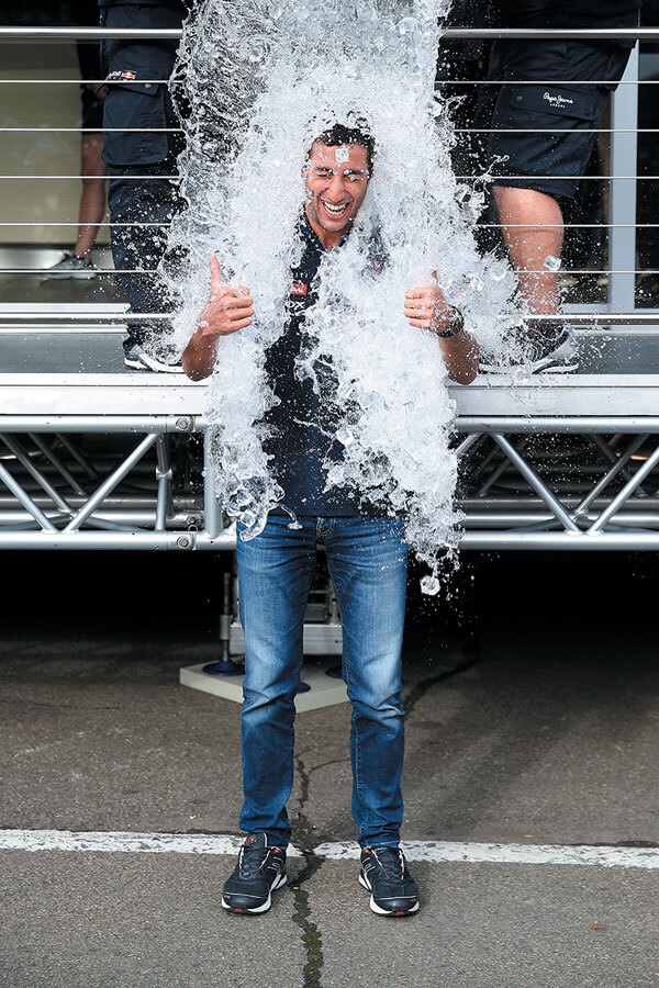 סרטוני אתגר דלי הקרח של ALS שנעשו בידי מיליוני אנשים, ובכללם נהג פורמולה 1 דניאל ריקיארדו, סייעו לעורר מודעות ולגייס כסף למחקר.