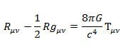 צד ימין של המשוואות מתאר את התפלגות המסה והאנרגיה במרחב-זמן: טנזור צפיפות האנרגיה מוכפל בקבוע יסודי השווה ל-8πG/c4 (כאשר G הוא קבוע הכבידה ו-c היא מהירות האור).