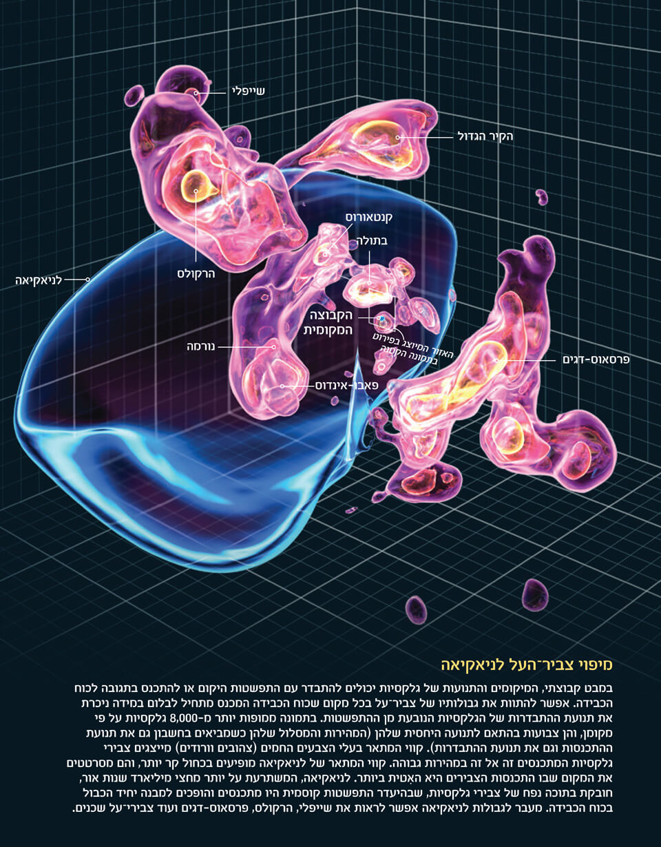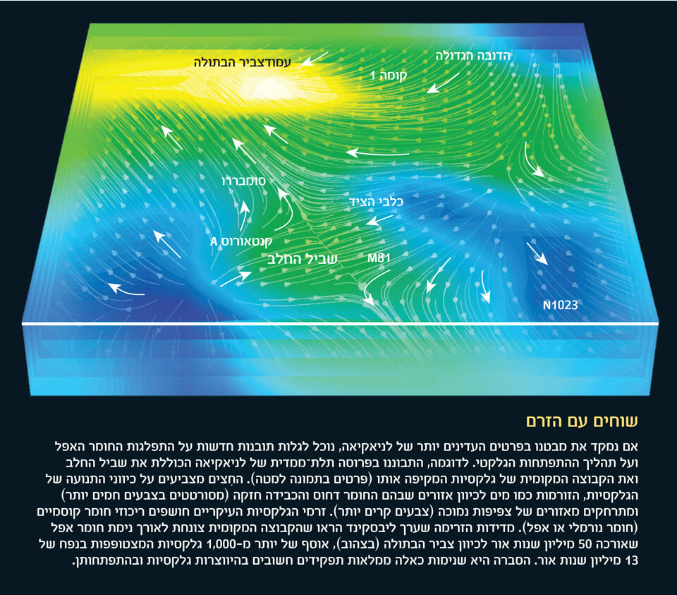 זרמי גלקסיות השוטפים במרחבי החלל חושפים את קווי המתאר של מבנה המכונה לניאקיאה, הכולל את שביל החלב שלנו ועוד כ-100,000 גלקסיות גדולות אחרות.