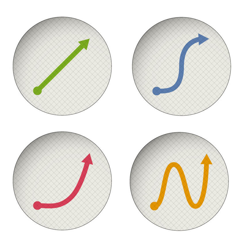 שילוב של עלייה מהירה בהתחלה עם השתטחות בהמשכה יוצר את עקומת הצמיחה הלוגיסטית המפורסמת, שבה הצלחות חדשות בשלבים מוקדמים של תהליך יוצרות קצב שינויים מהיר, אבל בהמשך, ניצול המשאבים שאפשרו את השינוי מדלדל אותם, ואז קצב השינוי פוחת ומתקרב לאפס. עקומה כזאת יכולה לתאר חלקים מסוימים של תהליכים ביולוגיים רבים, ומסיבה זו היא אופיינית לדינמיקה של אוכלוסיות. דוגמה קלאסית לעקומה צמיחה כזאת מתקבלת כשמסרטטים גרף המתאר מה שקורה לאוכלוסייה של צבאים המגיעים לאי חדש ומאכלסים אותו.